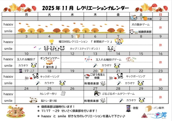 11月のレクリエーションも盛り沢山になっております(╹◡╹) 今月も皆様と一緒に楽しい月にしたいと思います(*^▽^*) #デイサービス幸笑 #デイサービス #栃木県 #宇都宮市 #平松 #レクリエーション